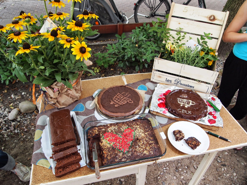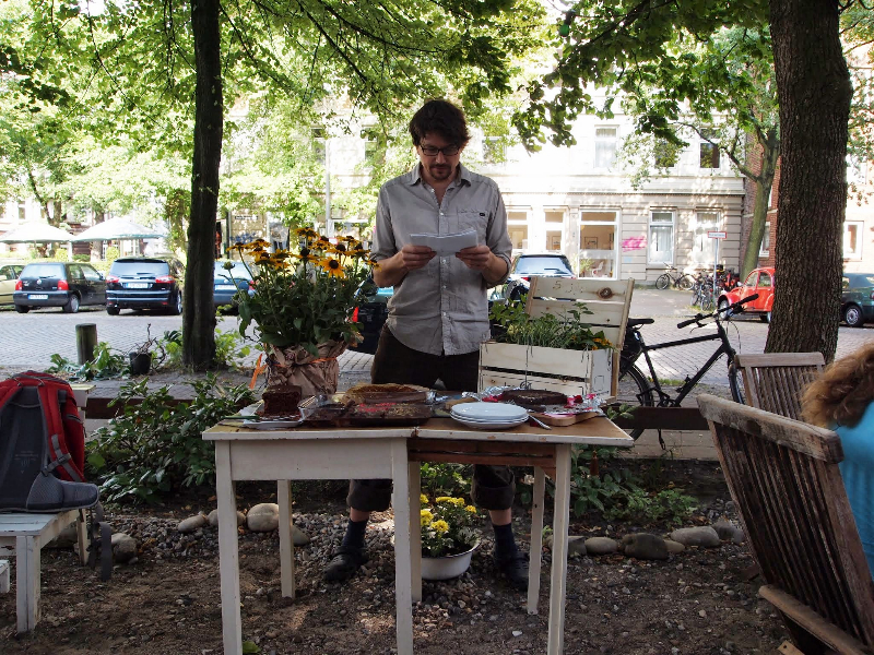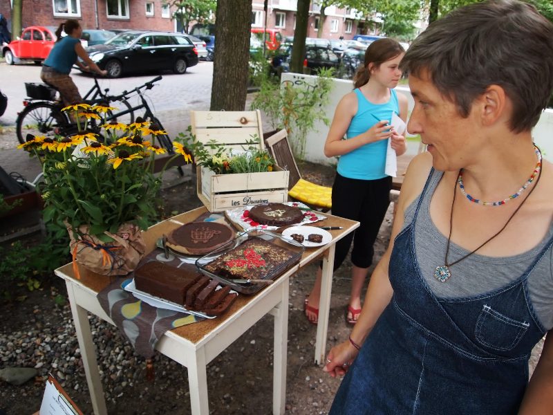 Bringt uns an diesem Tage bis 16 Uhr einen selbstgebackenen Schokokuchen! Hell, dunkel, vegan, mit Hack – wie auch immer Ihr meint, dass er sein muss. Bloß Bio sollte er sein, versteht sich. Wir werden ihn dann mithilfe einer ca. dreiköpfigen Jury kritisch nach äußeren und inneren Werten beurteilen. Und der Spitzenkuchen wird um 17 Uhr mit einem Geschenkkorb ausgezeichnet! Alle Kuchen werden schließlich im Laufe des Nachmittags von allen Interessierten aufgegessen.
